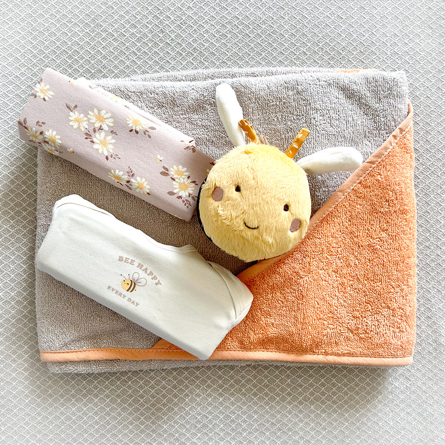 moments Windeltorte Biene in Beige und Gelb – Geschenk zur Geburt