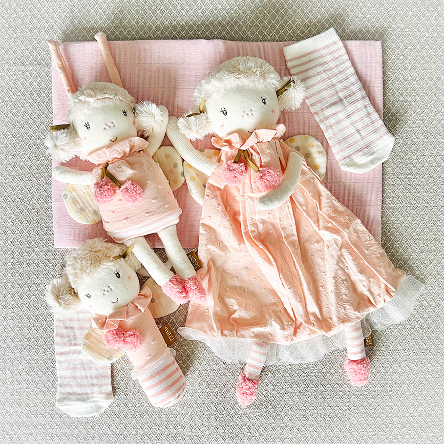 Das zauberhafte Schmusetuch Fee ist Einschlafhilfe und Kuschelfreundin in einem. Die kleine Fee liebt es, zu schmusen, und begleitet Babys zuverlässig – zuhause wie auf Reisen. Beim Einschlafen schenkt sie Geborgenheit, während die Glow-in-the-dark-Elemente sanft leuchten und die Angst vor der Dunkelheit nehmen. Das kuschelweiche Feenkleid aus verschiedenen Materialien lädt zum Greifen, Fühlen und Knuddeln ein.